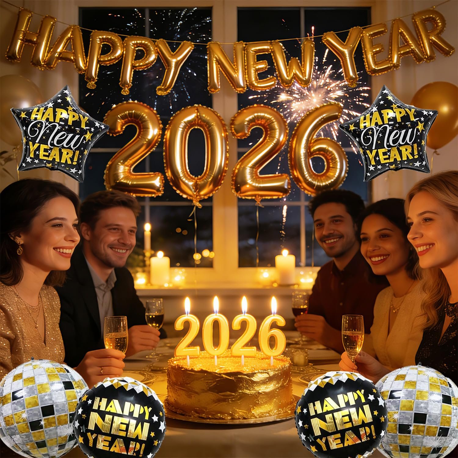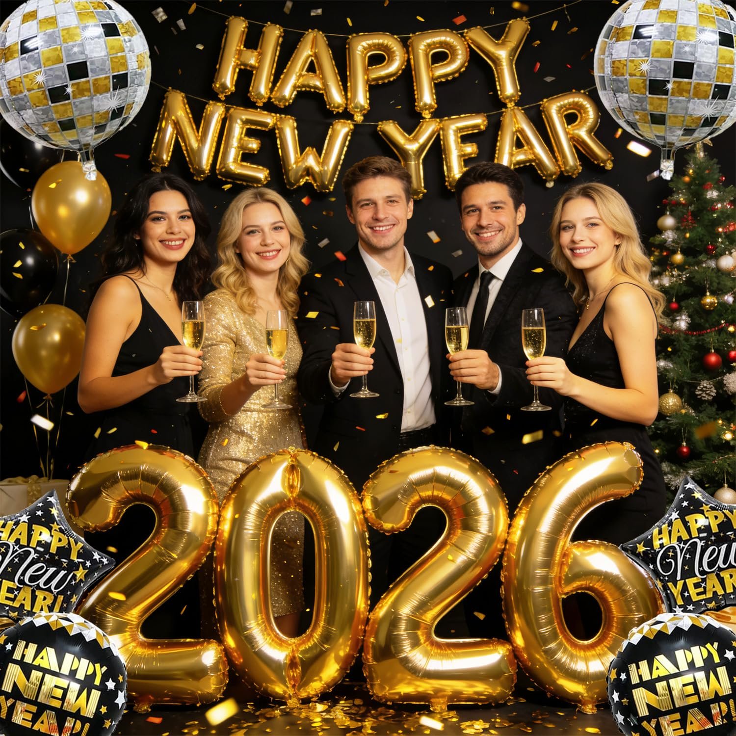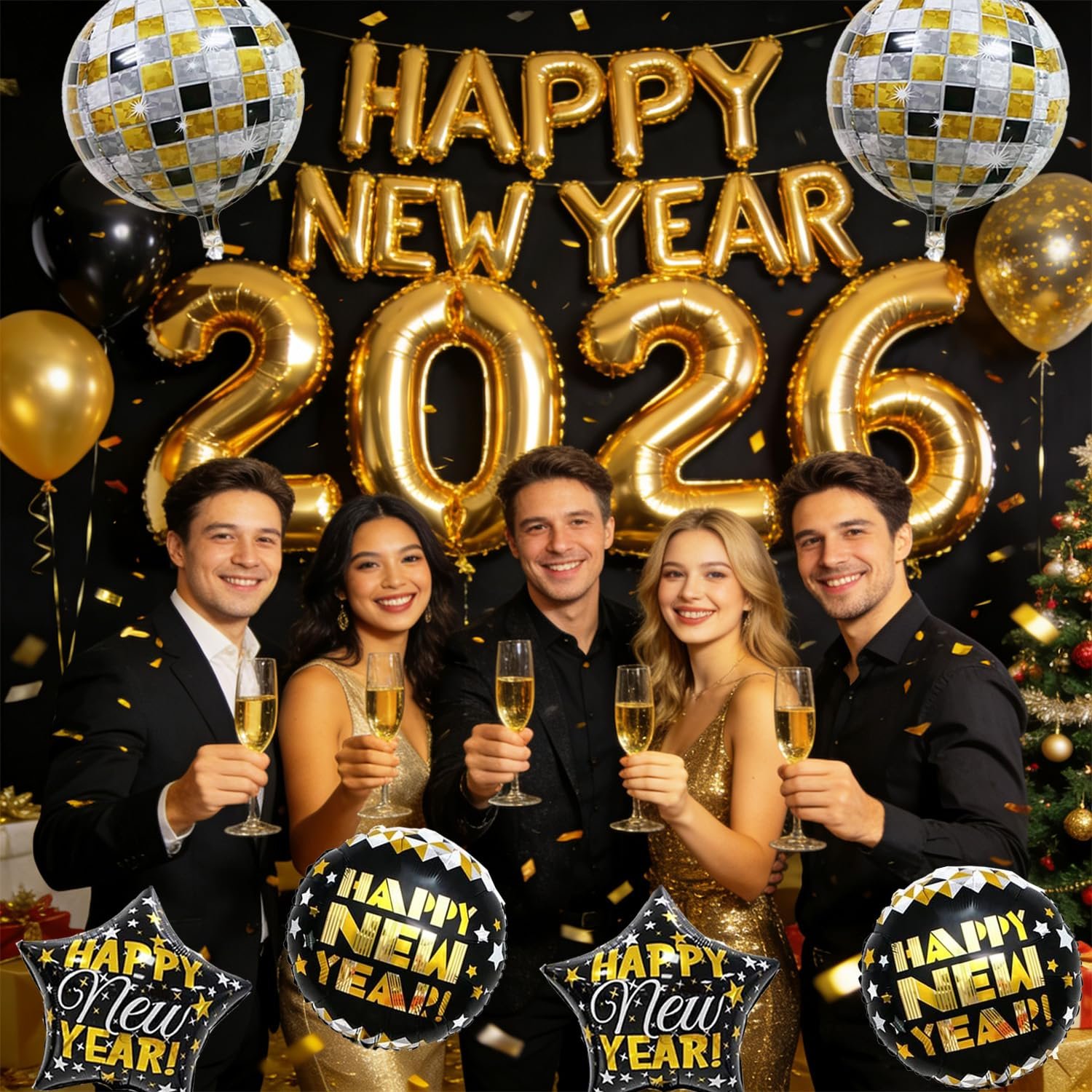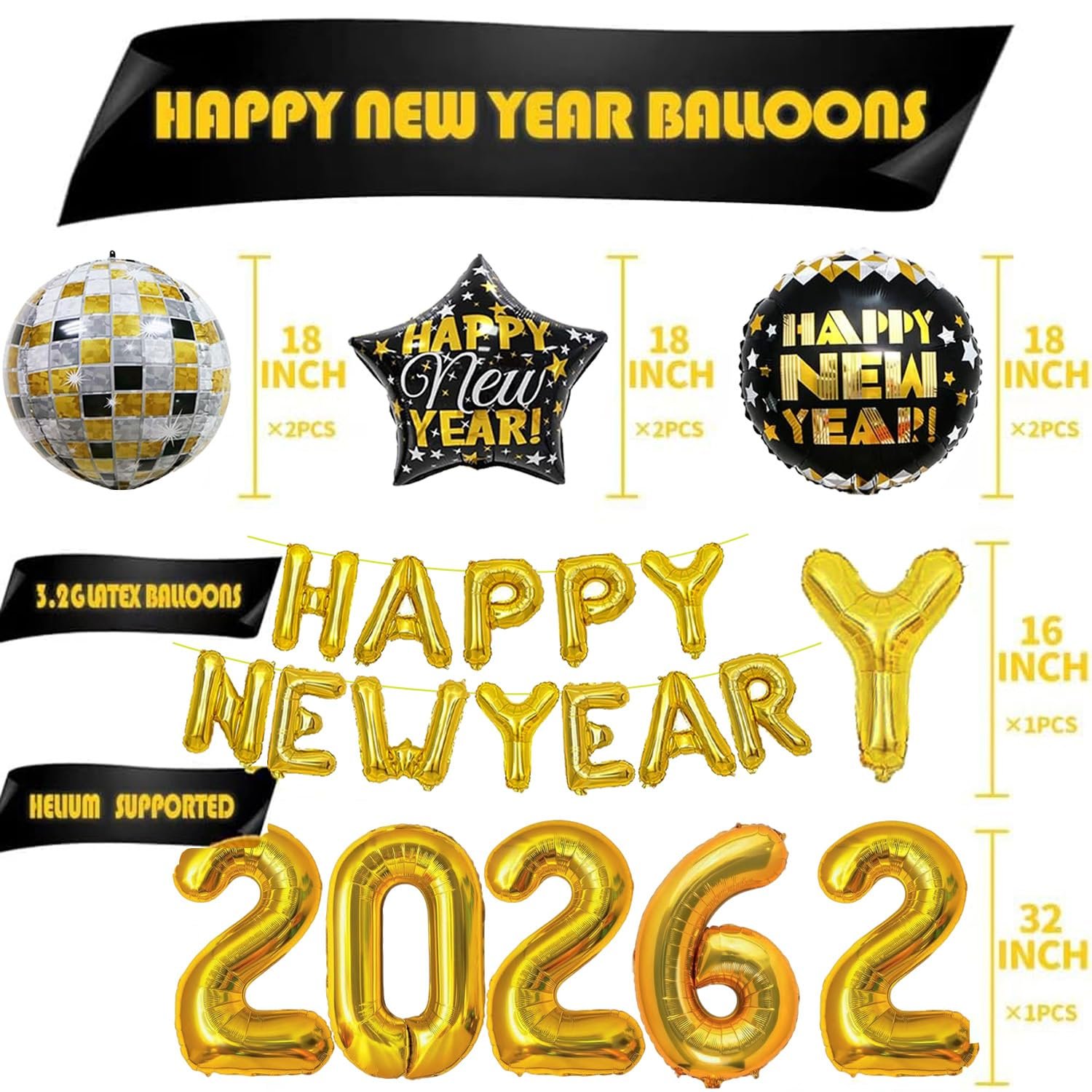 - New Year Decorations 2026: 32inch New Year’s 2026 Balloon*4, and 16inch Happy New Years Foil Balloons,New Year Foil Balloons*4,2pc disco balloons decorative set, you can create an unforgettable New Year’s Eve celebration atmosphere.