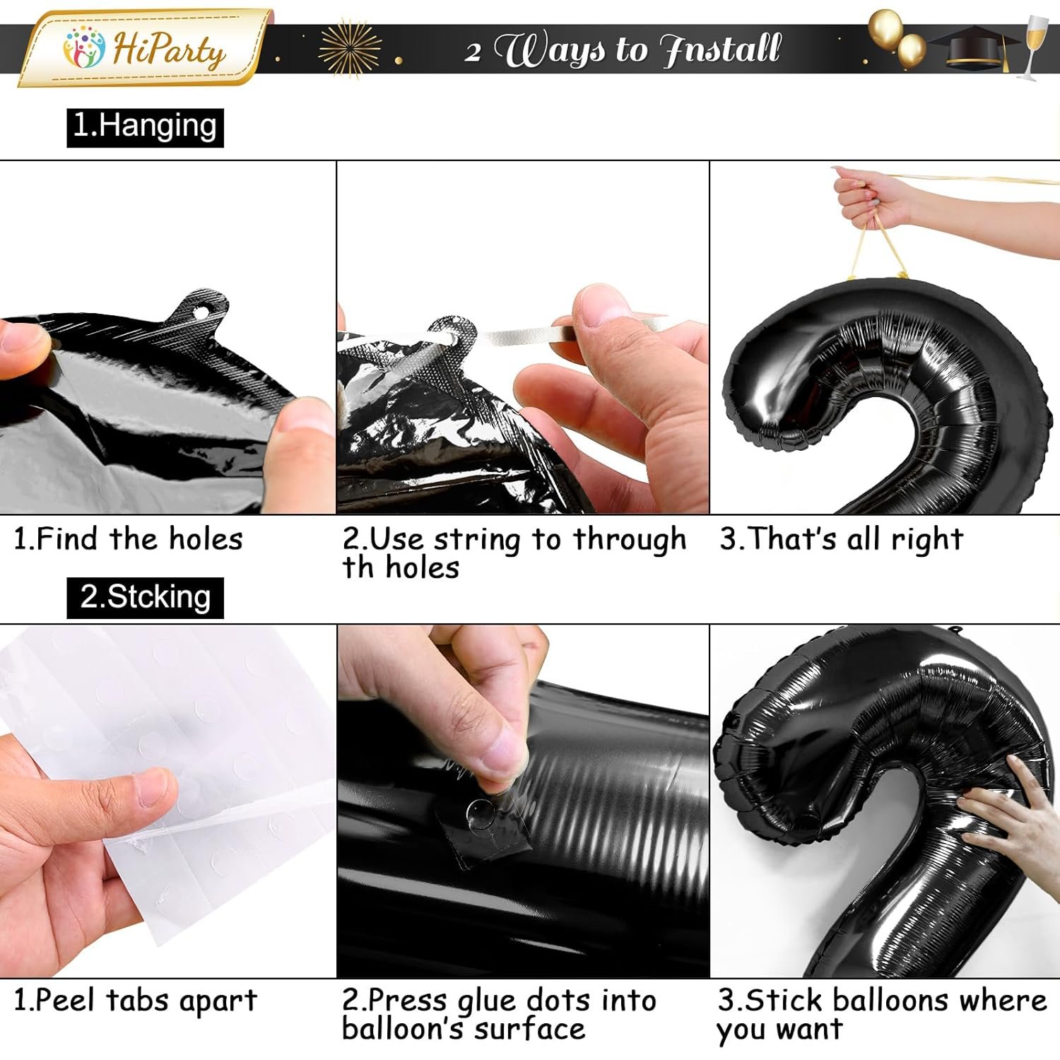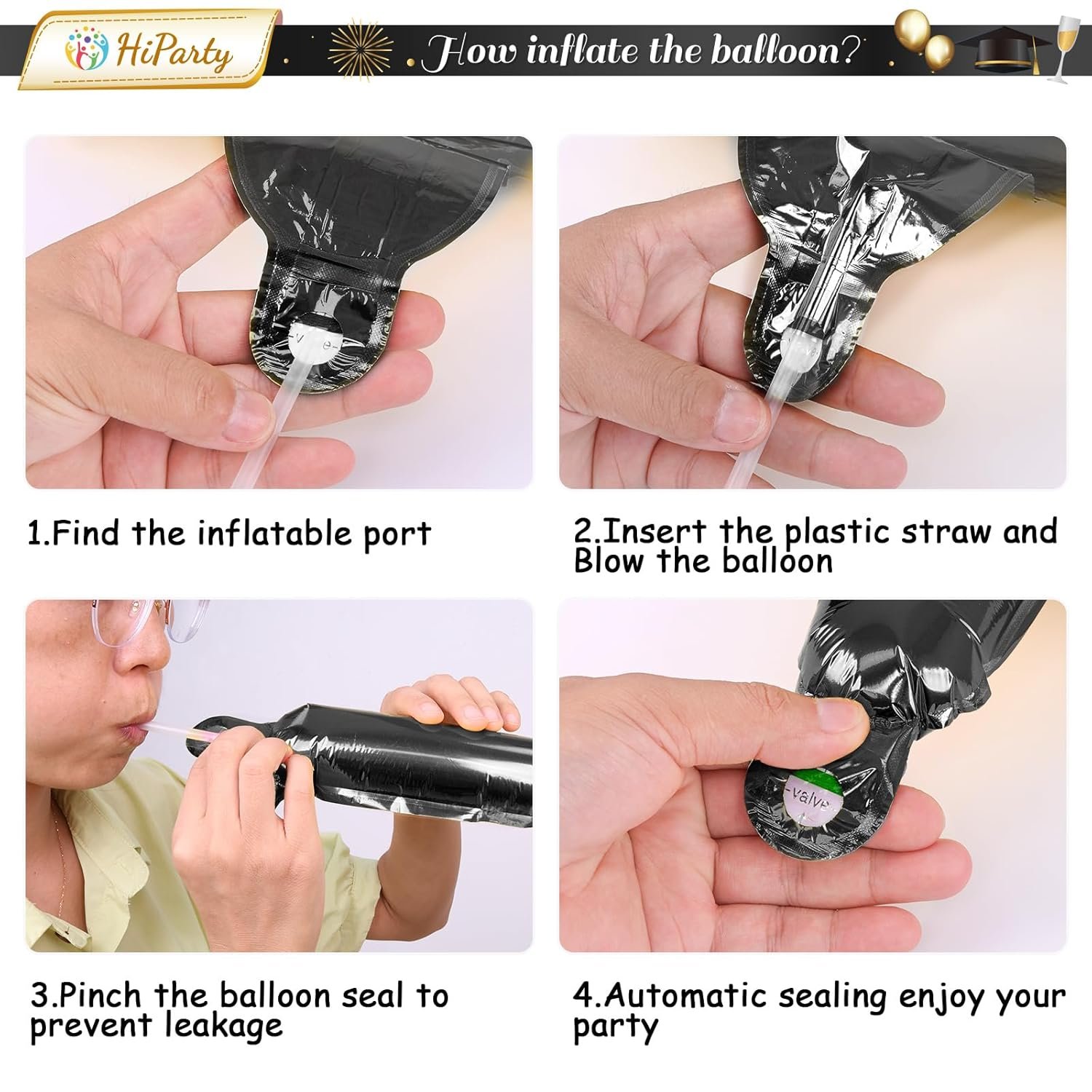 - 🌈【Premium Quality Materials】Made from top-quality aluminum foil, our Black balloons are durable and long-lasting. They won’t easily deflate or lose their shape, ensuring your decorations stay vibrant throughout the entire Graduation party. Light and sturdy, just fill with 90% helium to float. Self-sealing and reusable, you can use the straw to deflate the balloon after the party.